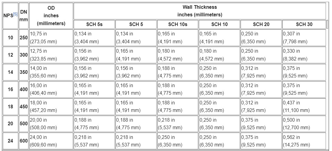 - NPS > = 4, DN = NPS * 4